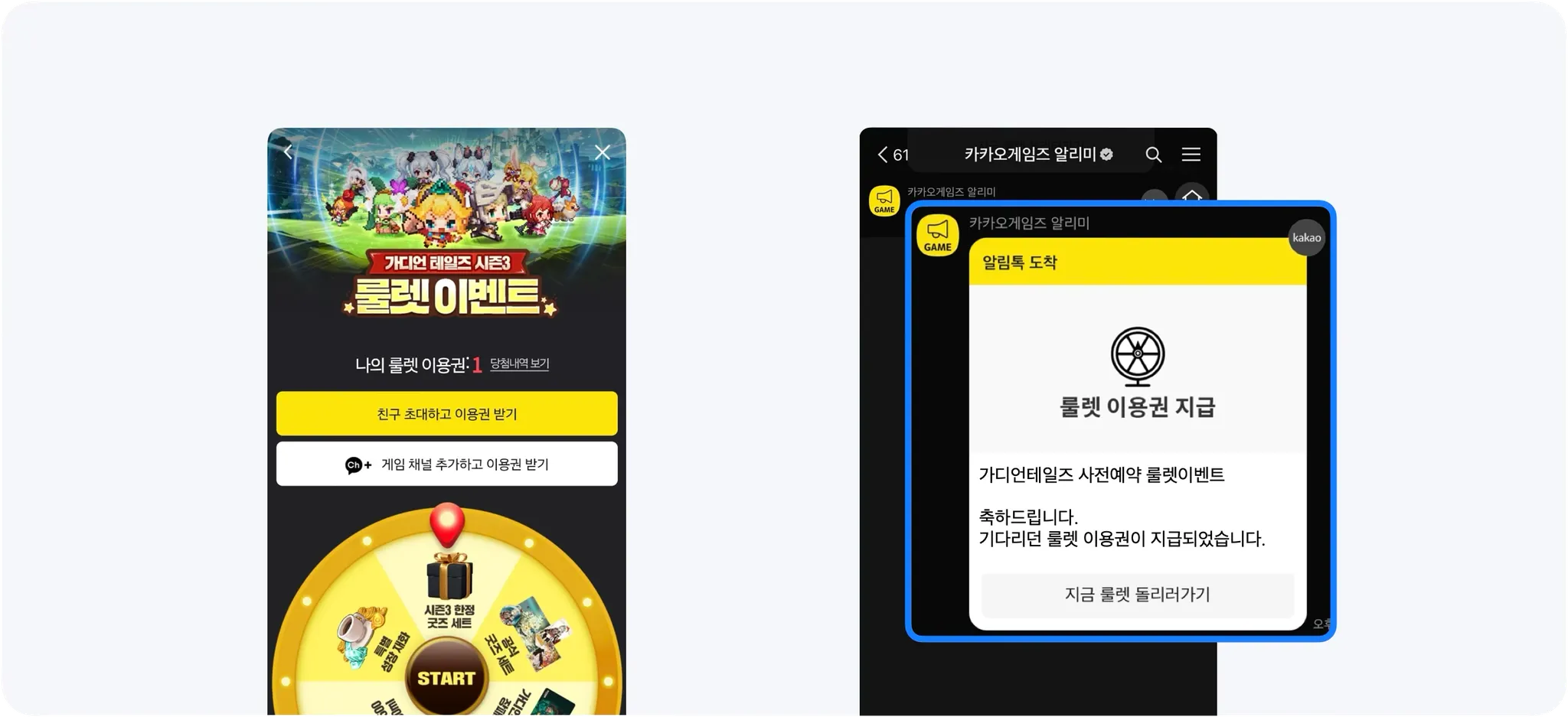 카카오게임 사전예약의 추가 이벤트 기능 중 하나로, 사전예약 완료 유저들에게 룰렛을 통해 경품을 제공할 수 있습니다.