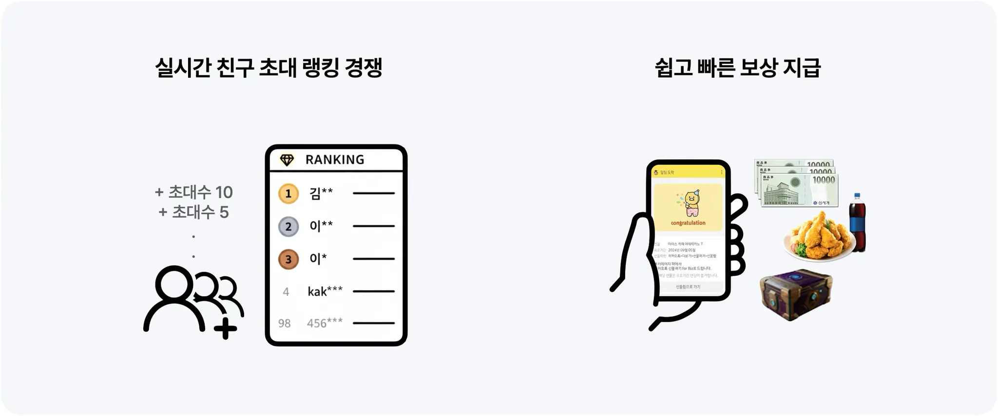 을 통해 최대 1,000명까지 초대 랭킹에 따라 경품이 지급이 가능하며, 초대 수에 따라 게임 아이템(쿠폰) 지급이 가능한