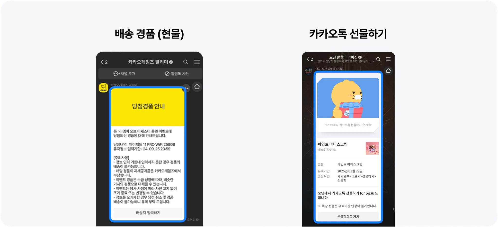 * 배송이 필요한 현물 경품의 경우, 당첨자에게 배송지 정보 수집 링크 발송을 지원하고, 실제 경품 배송은 광고주 측에서 진행합니다.