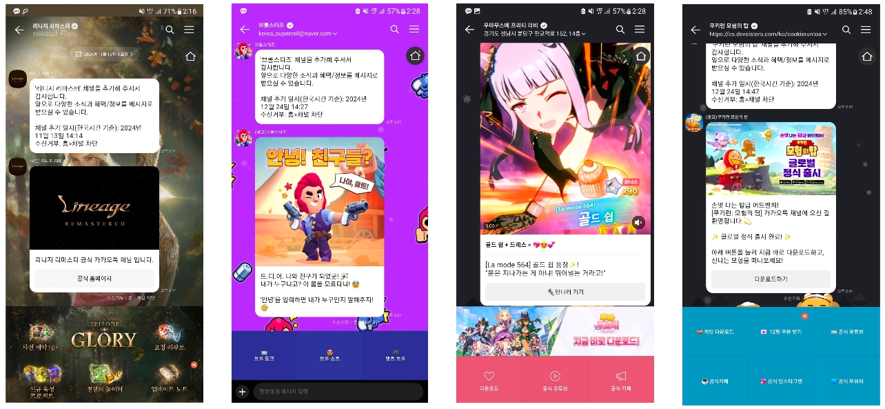 게임채널 광고는 카카오게임즈 톡채널 메시지 상품에 한하여 서비스율 제공