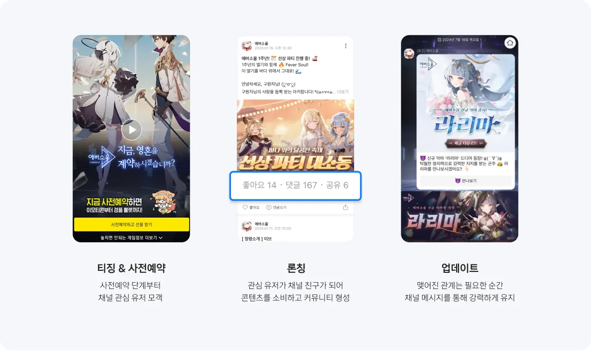 관심 유저가 모여있는 내 게임만의 단독 채널에서 가장 빠르고 강력한 메시지 전달