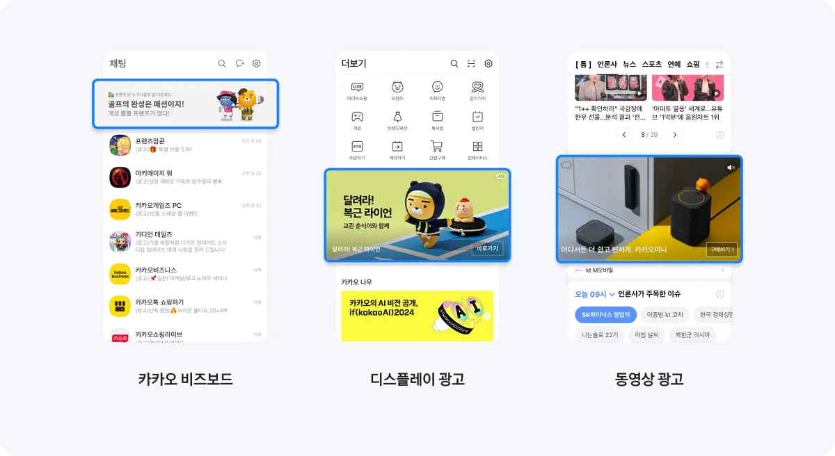 카카오의 메가 트래픽을 활용한 다양한 지면에 다양한 형태의 광고 노출로 효율 극대화