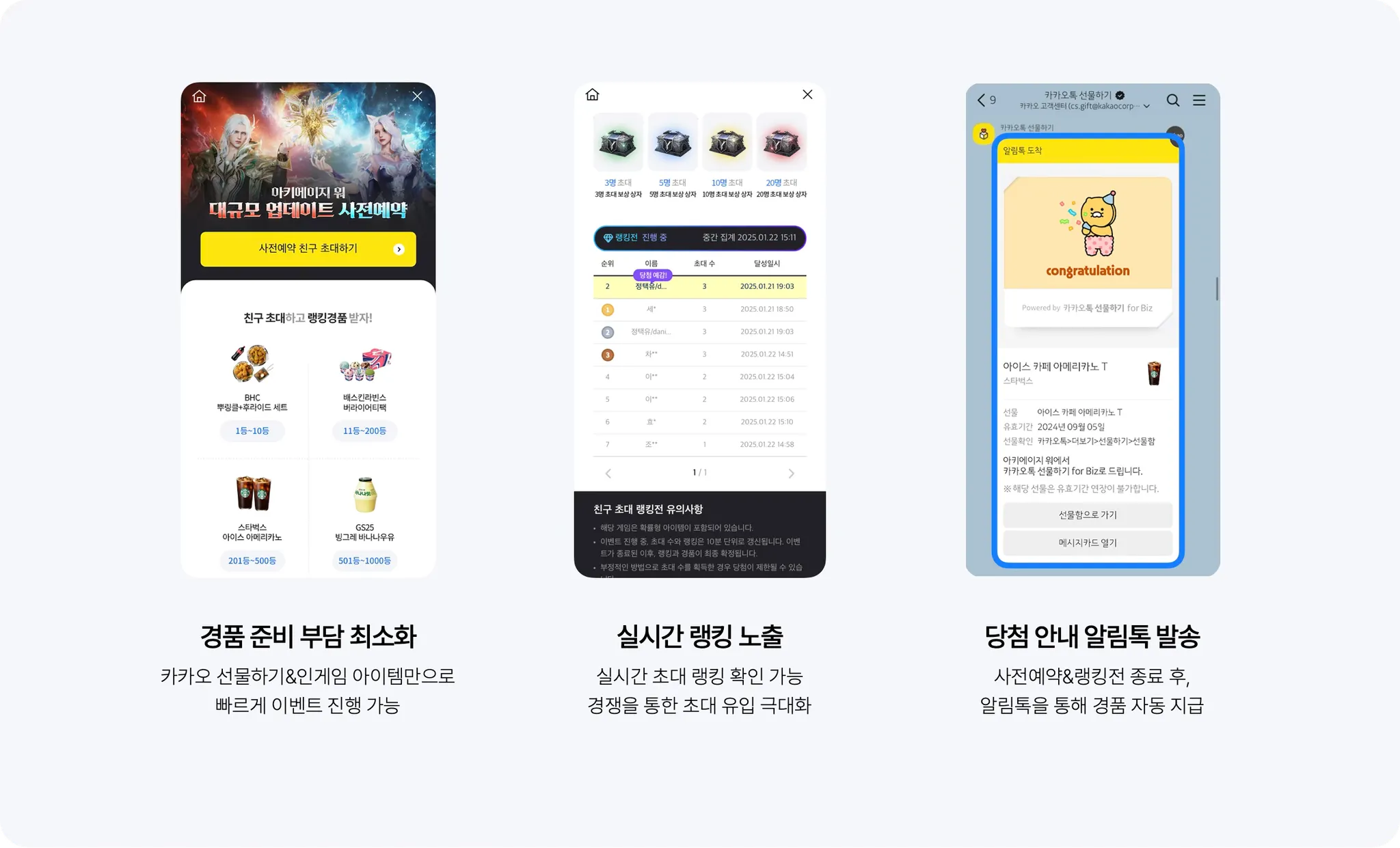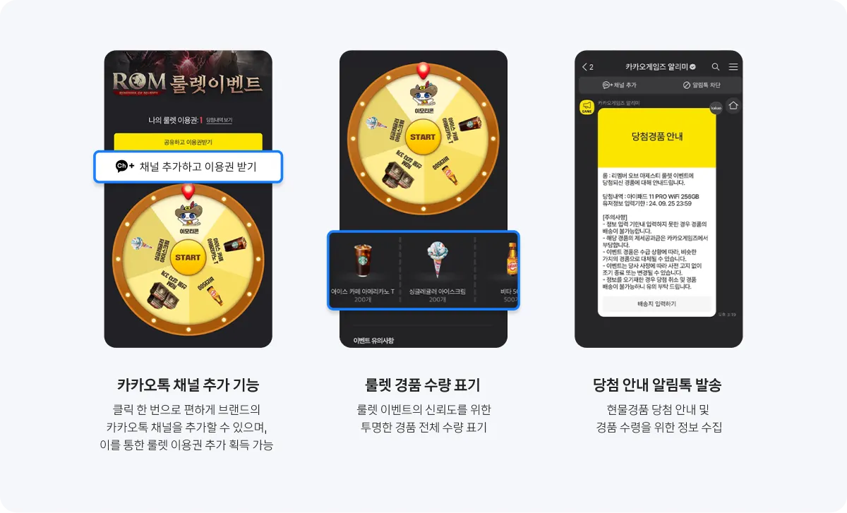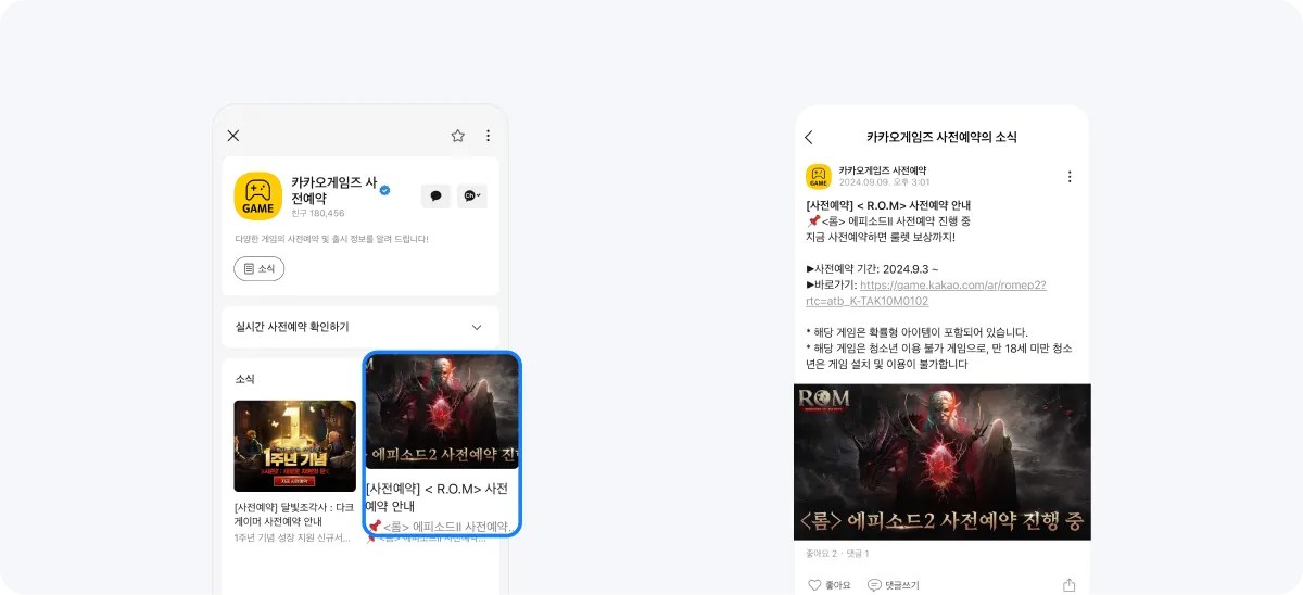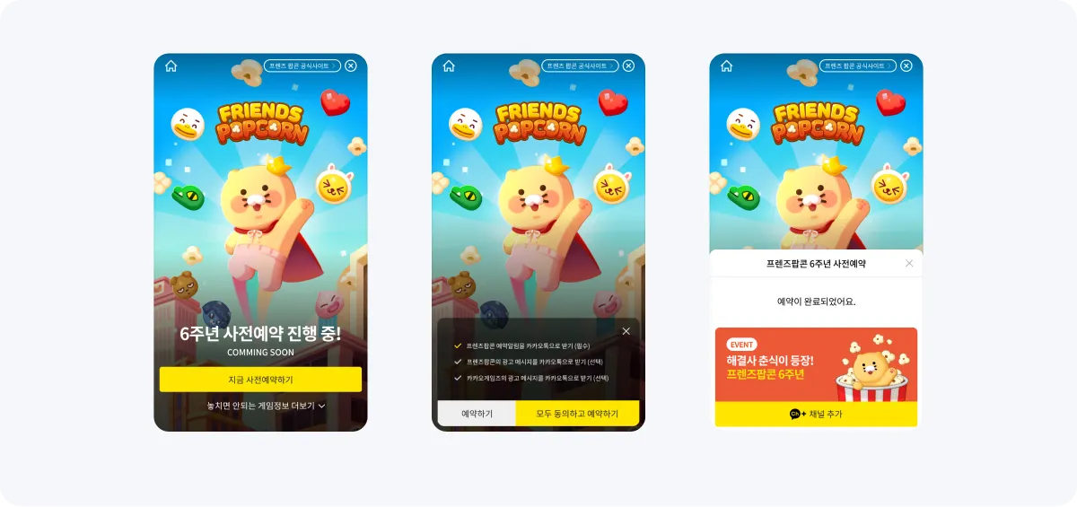 카카오톡 내에서 사전예약부터 이벤트 참여, 카카오톡 채널 추가까지 간편하고 자연스러운 동선