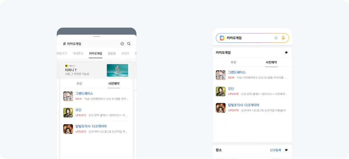 카카오톡 #검색 및 다음 모바일 앱에서 ‘카카오게임’ 키워드 검색 시, 사전예약 캠페인 노출 지원
