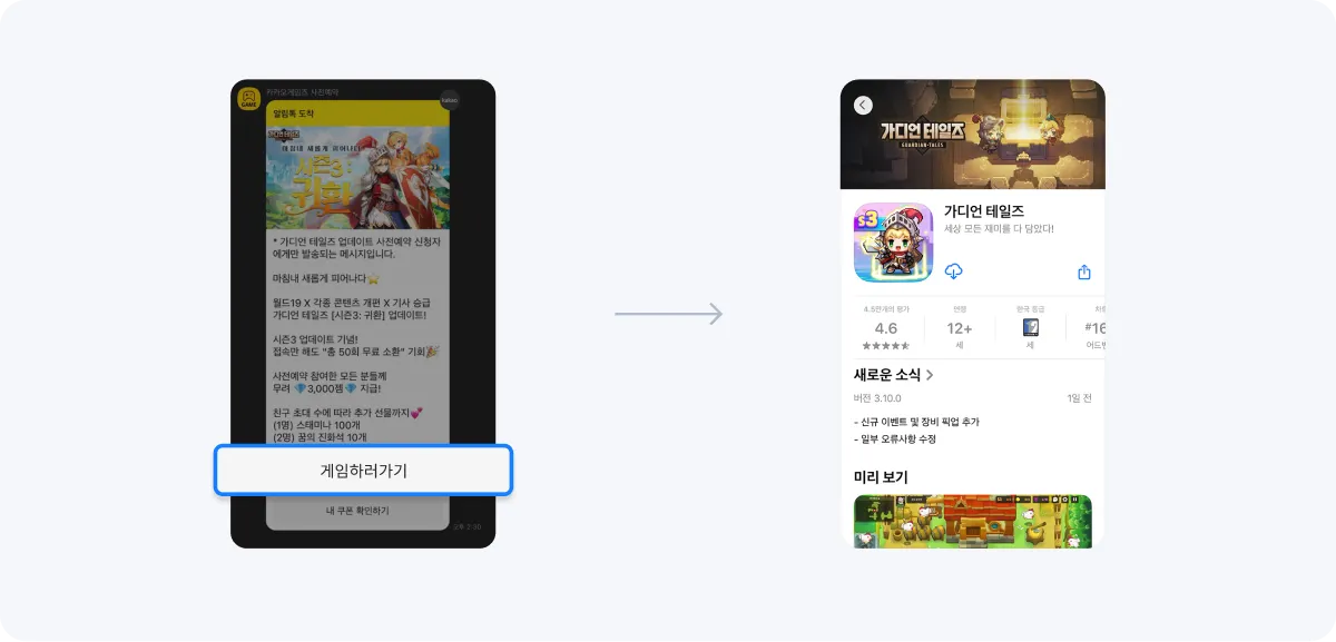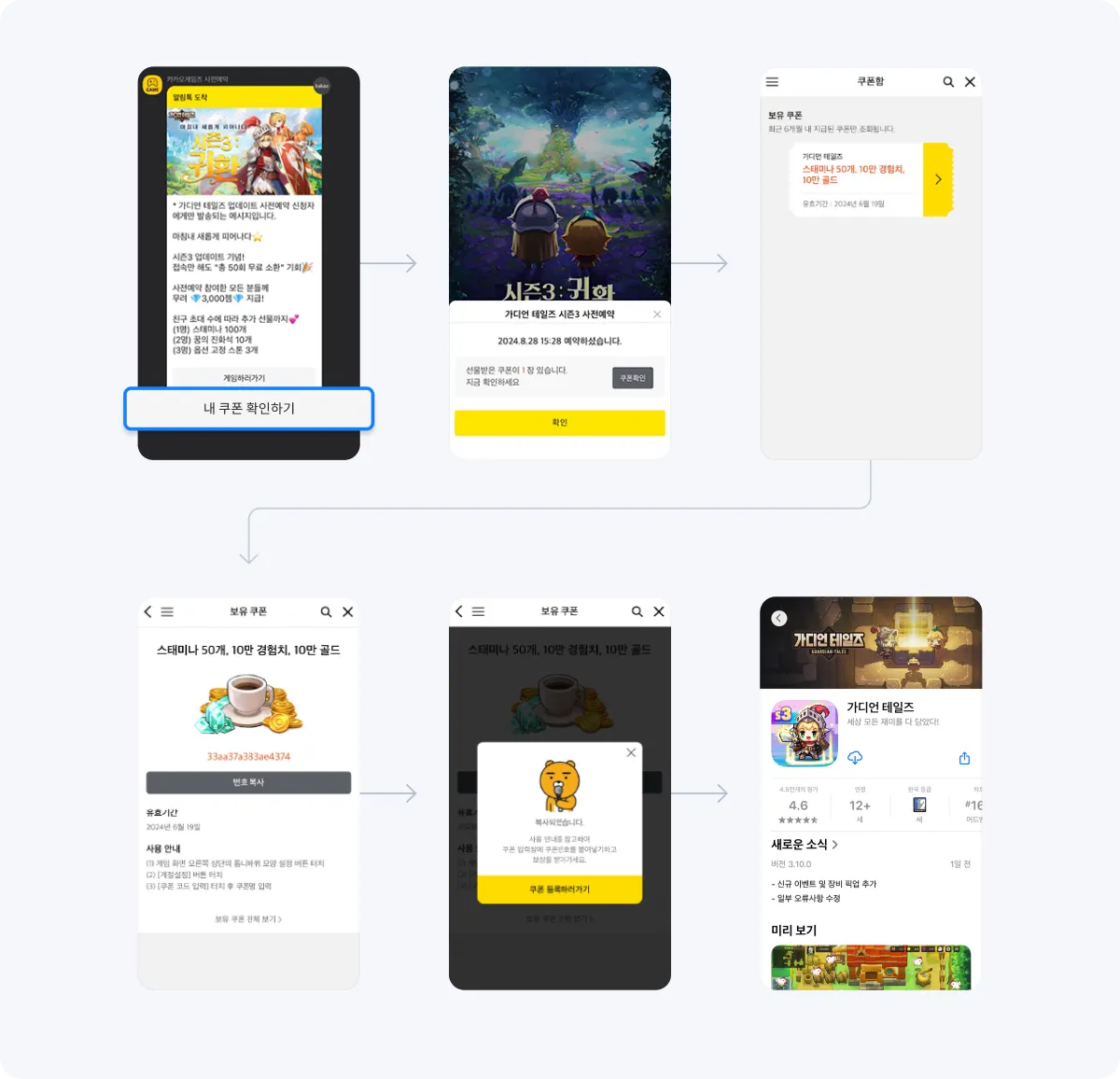 유저가 카카오게임 사전예약 완료 후 이용권을 받아 참여 가능한 이벤트