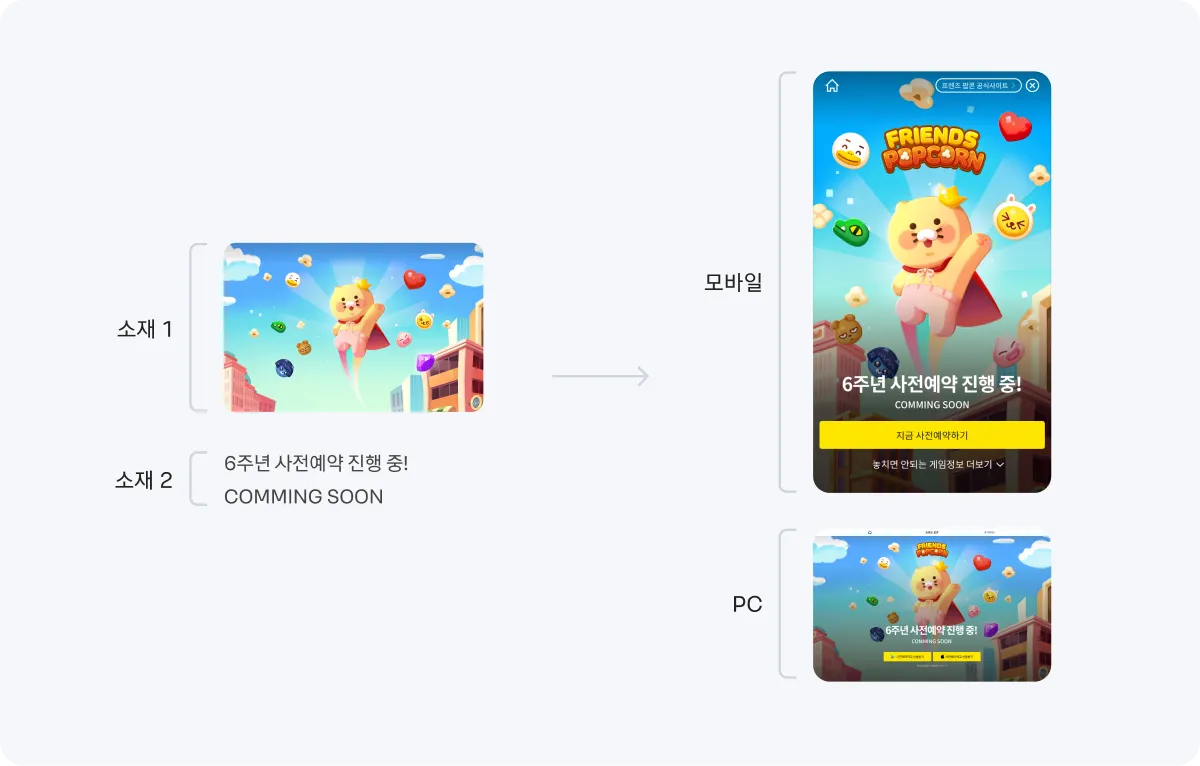 영상과 이미지를 조합한, 게임 마케팅 전략에 맞춘 주목도 높은 사전예약 페이지 구성 가능